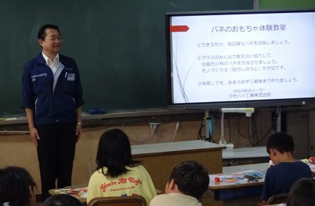 東大阪市の小学生を対象に行われている「紙バネ体験教室」。