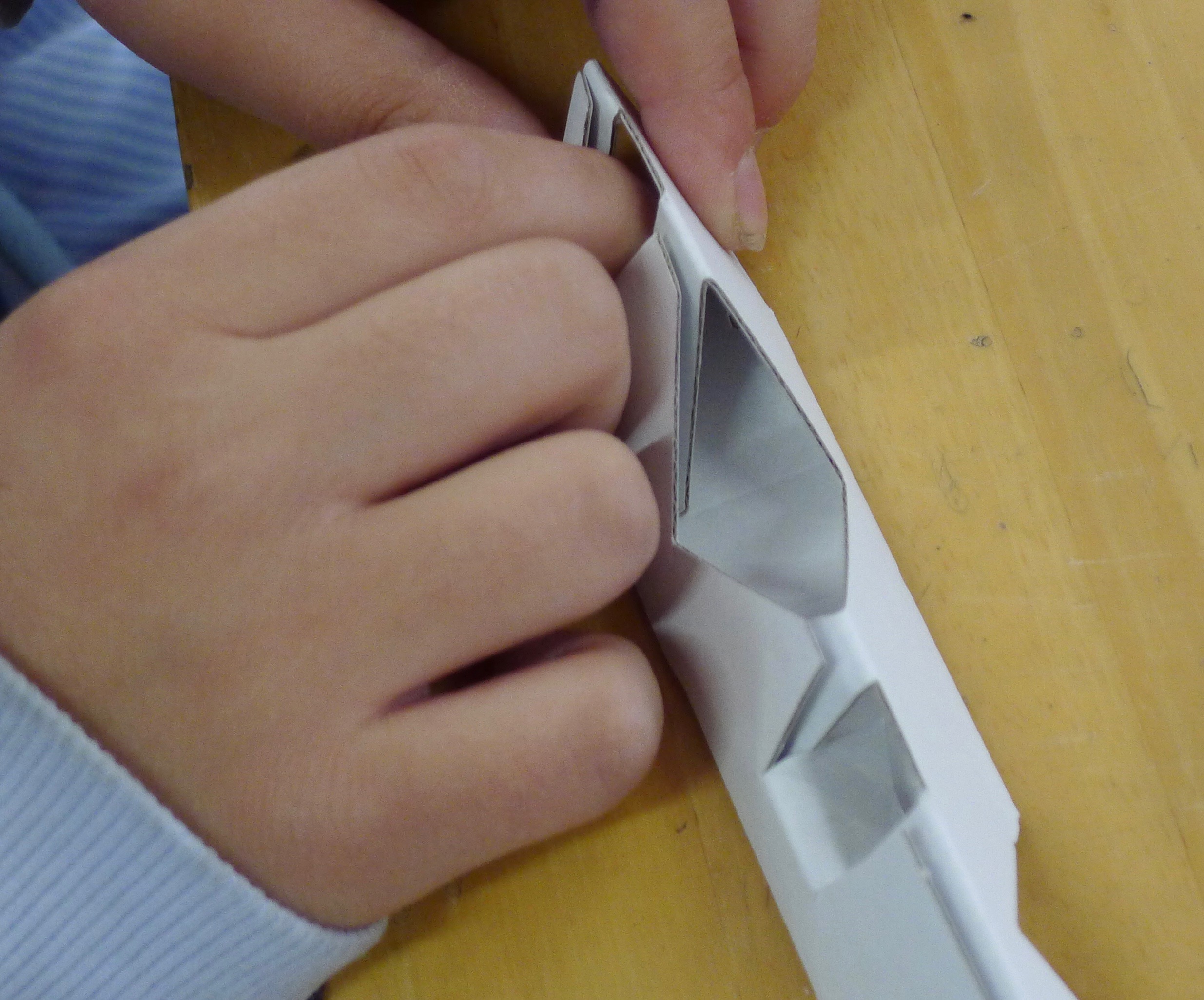 三角柱を固定するために、紙と紙を噛み合わせるようにして、ロックをかけます