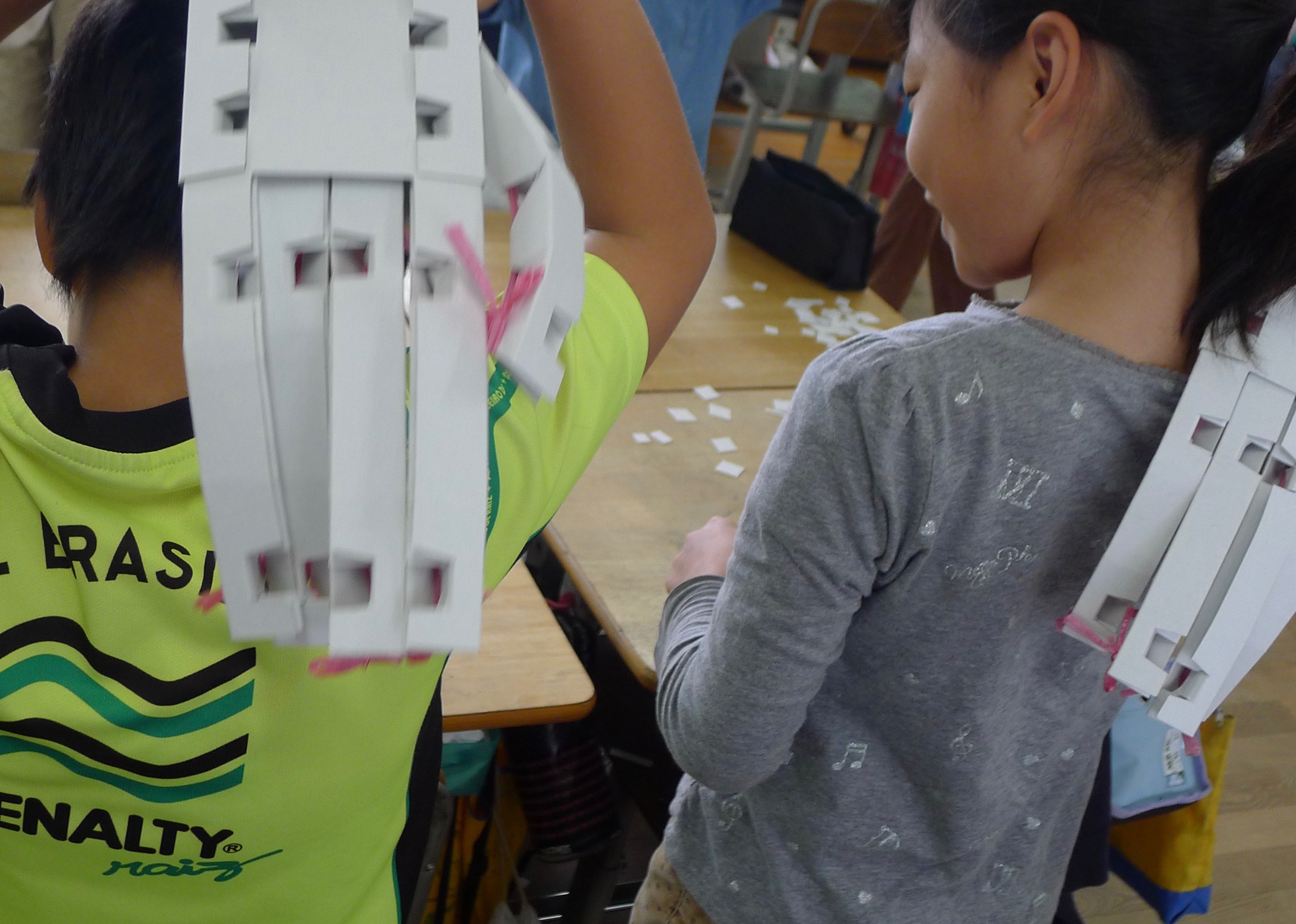 クラス全員が時間内に「ロボットの手」を完成させました
