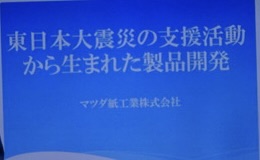 東日本大震災の際には従業員の方が車で段ボールのベッドや間仕切りを持ち込んで被災地の支援をしました。