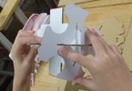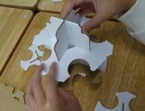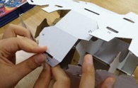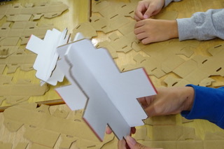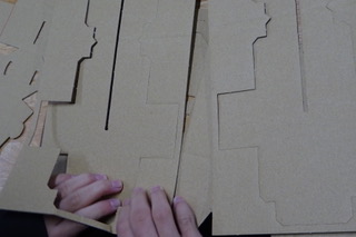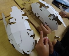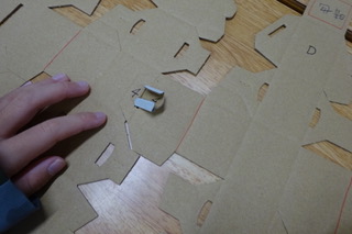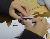 配布された段ボール。切り目に沿ってどんどん切り離していきます。