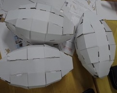 芯を覆うようにラクビーボールの外側を作っていきます。